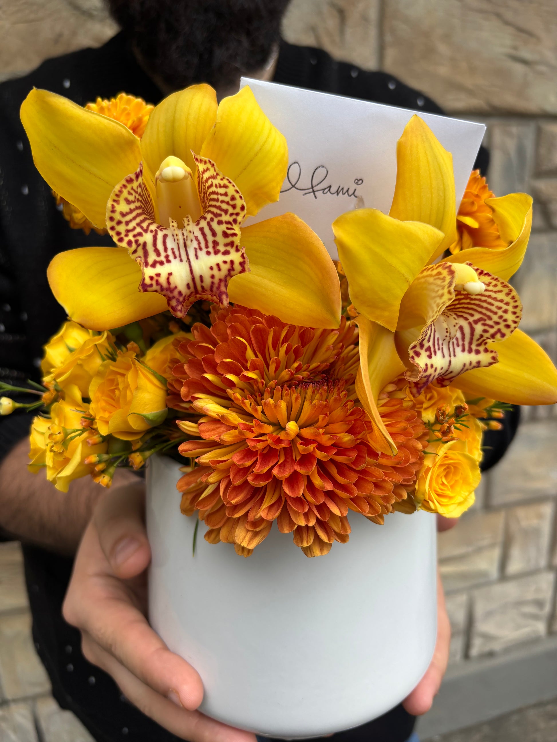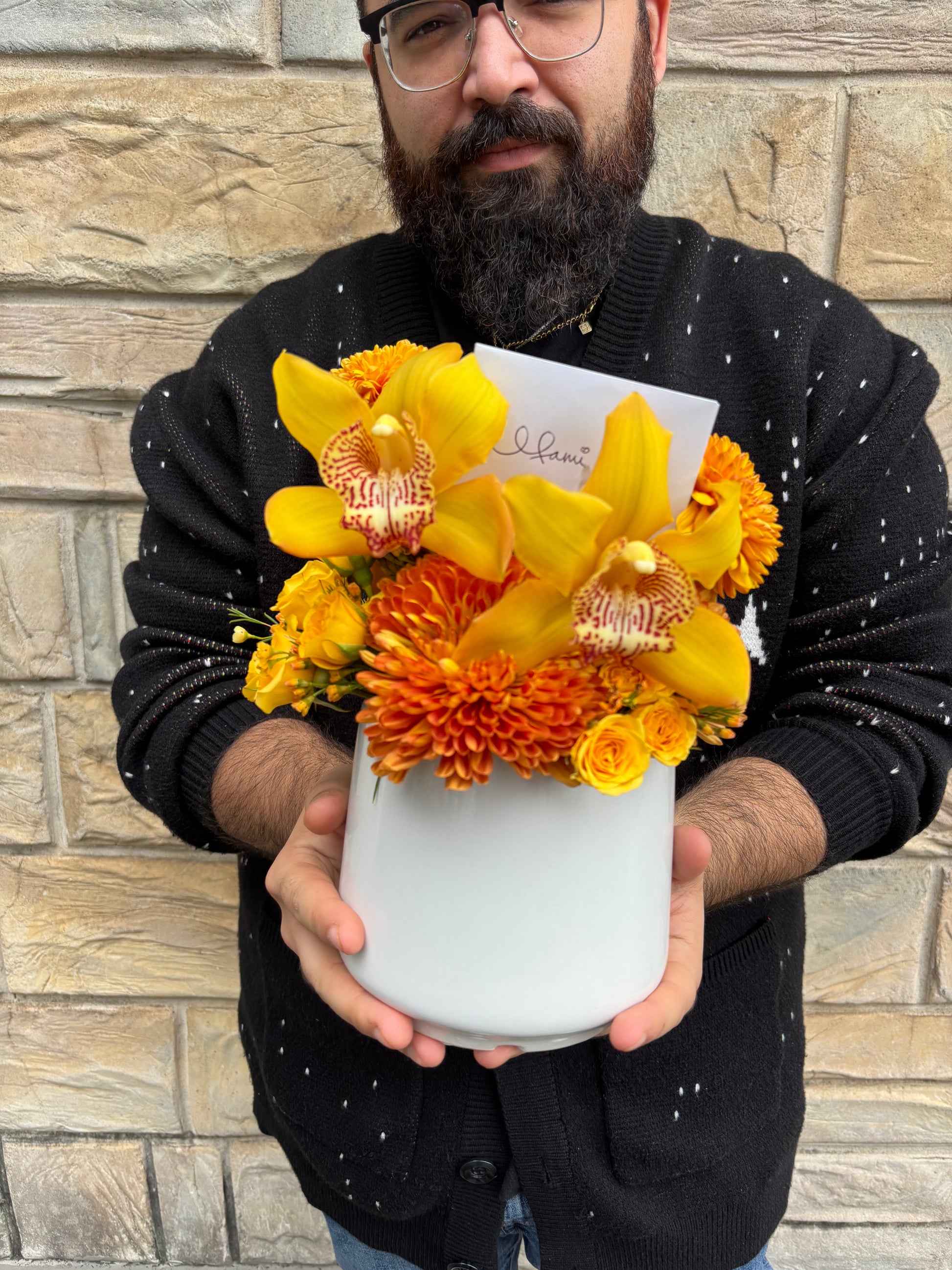 Inspirado en la calidez del sol y la energía de mayo, este arreglo combina tonos amarillos que irradian optimismo y felicidad.Perfecto para celebrar nuevos comienzos, compartir luz o simplemente recordar que la alegría también florece.